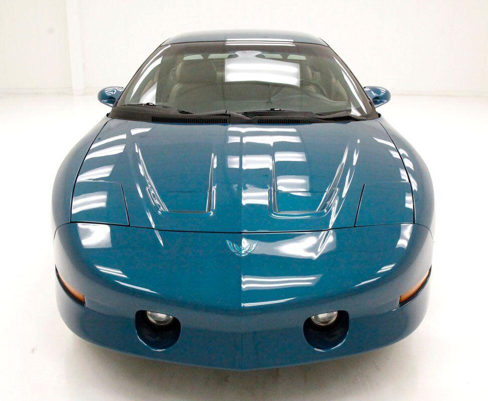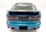 Not like the days of yore with the screaming chickens, muscle engines, and 1980’s lumbering styling. NOPE! This takes in a European aero look with hidden headlights, a rounded front with body matching neoprene bumper that slices through the air with MPG efficiency. Trimmings are also body matching including a belt line bump out, and a rear spoiler that wraps around the rear greenhouse glass. Rounded inset tail lights are below the spoiler, and another neoprene body matching in Teal Blue Metallic has cut outs on the bottom to highlight the dual dual exhaust pipes peeking out from underneath. Tinted glass with black trimmings surrounds the passenger compartment giving plenty of viewing space from the raked back windshield and expansive rear glass. 16 inch chrome 5 spoke wheels are highlighting the corners and are wrapped in 33rd week of 2008 production rubber. The styling euro design continues with the door panels which use molded black plastic for the door pulls and armrests as well as the door actuator, storage tray on the bottom and a small but mighty tweeter surround. This black is broken up by beige vinyl all nicely molded in and very clean. Stepping across the thresh-hold we see some sexy high back buckets that have uber curvaceous designs with tuck and roll inserts and some more tuck and roll on the side bolsters, and a sleek headrest on top. In back the hump breaks up the 2+2 seats in the same style as the front buckets and pristine beige leather. A black undulating center console is between the buckets and houses a glovebox and shifter. As this rises to the center dash we see more black panels with climate knobs and a killer AM/FM/CD with EQ stereo system. A trio of round vents is on the padded dash top. In front of the driver is a semi circular dash with semicircular blackface gauges and orange pointers. Beige carpeting floods the floors and above a fuzzy tight new molded headliner floats above all the chairs and curves of the interior.Under the hood is a 5.7L LT-1 V8 which puts out 275hp. It can leave the earlier versions of this car in the dust to say the least. It is fed by EFI, and has a 4L60E 4-speed automatic tranny on back. The rear axle is a 10 bolt, 3.23 posi version and it makes the rear tires smoke.